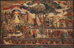 Hiéroglyphes, figures mythiques et religieuses se mêlent à une rythmique savamment orchestrée. L’artiste allie économie et précision du geste, petites touches empâtées et juxtaposées, référents figuratifs et mystiques... Ces œuvres sont construites de manière symétrique, à l’exception des figures anthropomorphes, et offrent un aspect presque kaléidoscopique.